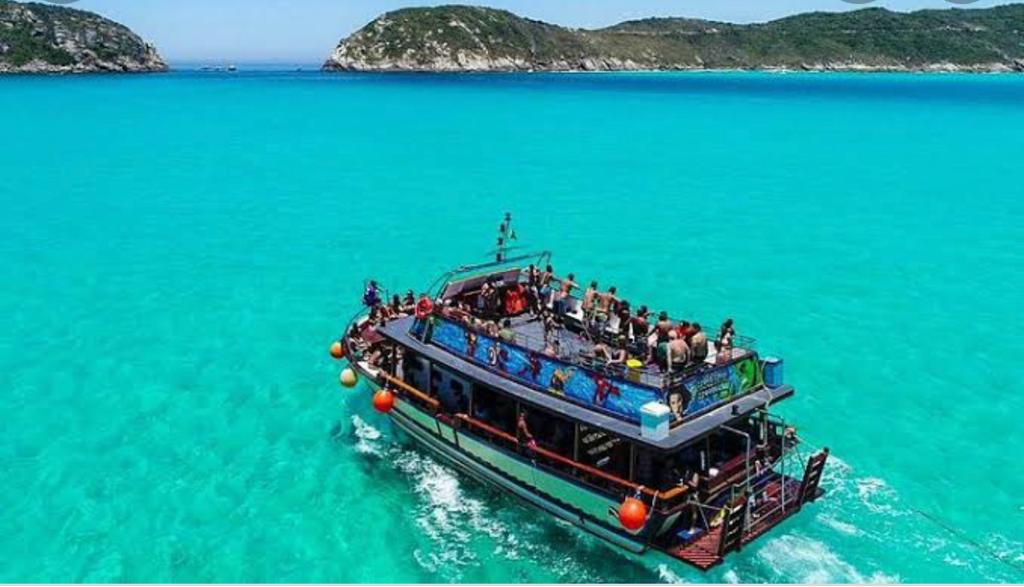 ROTEIRO: Ilha do Farol (desembarque de 20 minutos). Prainhas do Pontal do Atalaia (desembarque de 1 hora). Fenda de Nossa Senhora. Cara do Macaco. Gruta Azul (depende das condições de acesso ao mar). Buraco do Meteoro (depende das condições de acesso ao mar). Parada para mergulho na Enseada do Forno.